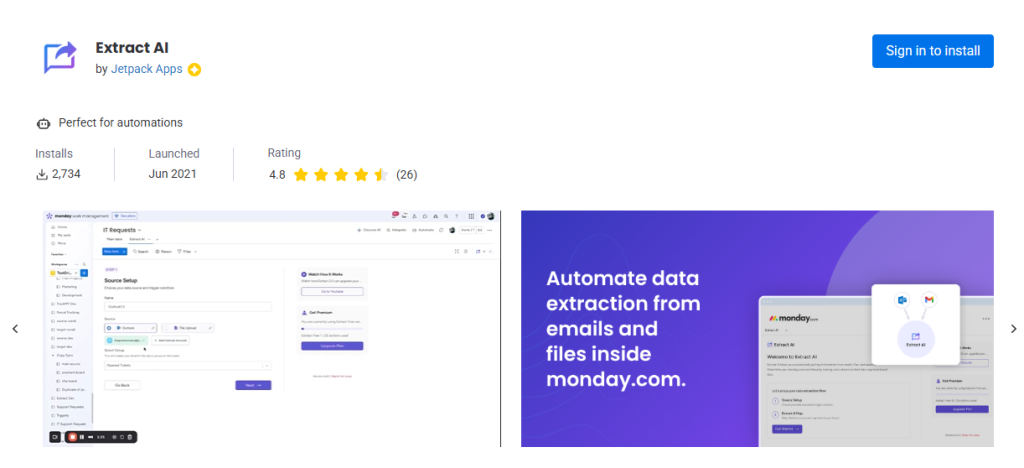 Step-by-step setup on how to automate data extraction from Gmail on monday.com using Extract AI: