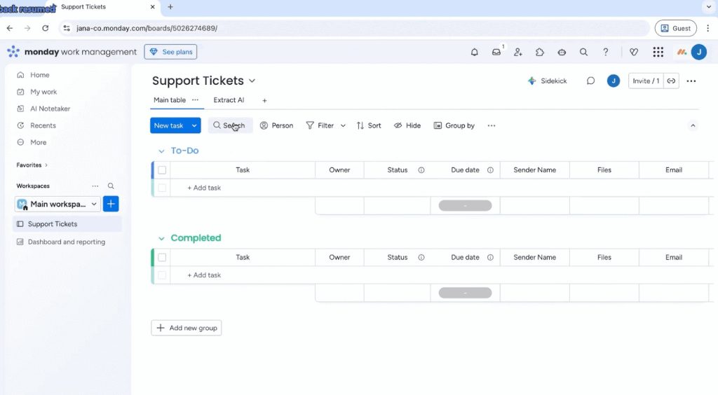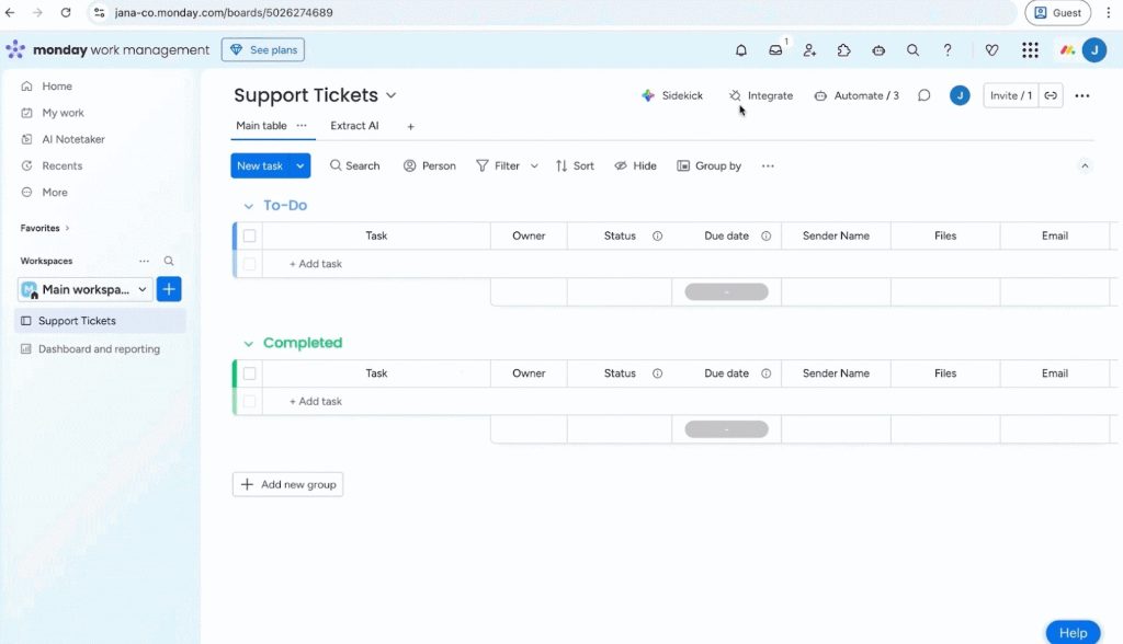 - Navigate to the monday.com board where you want to receive and process emails.