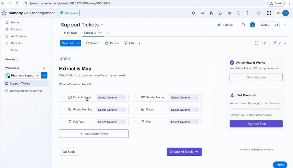 - Ensure you have the “Extract AI” app installed in your monday.com account. If not, click here to add it to your account.